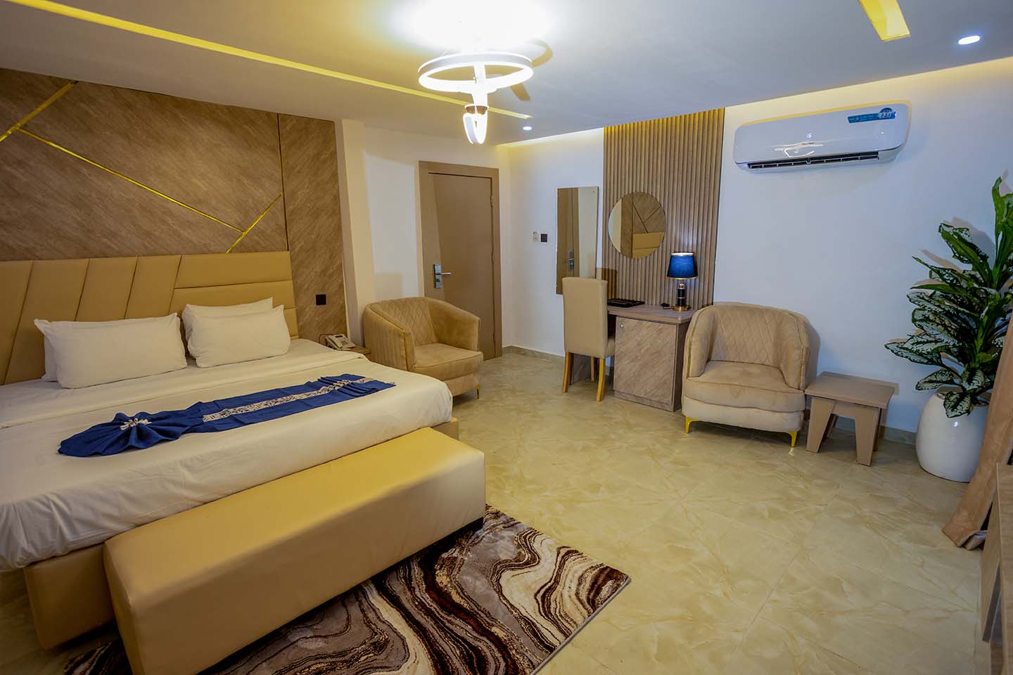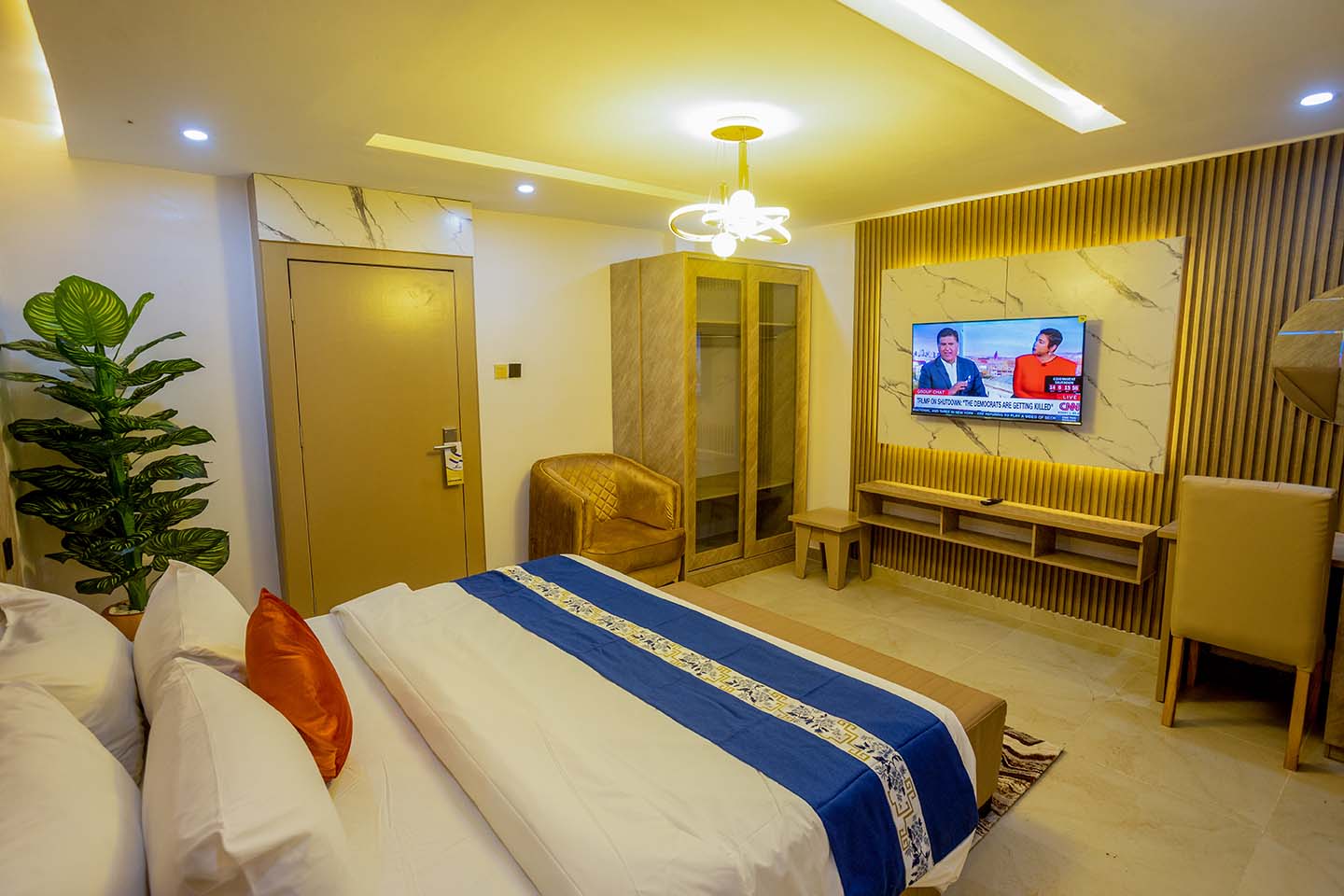 Experience true elegance in our Executive Deluxe Room, a perfect blend of modern design and luxury comfort, complete with high-speed WiFi, SMART TV, and complimentary breakfast for a truly relaxing stay.
